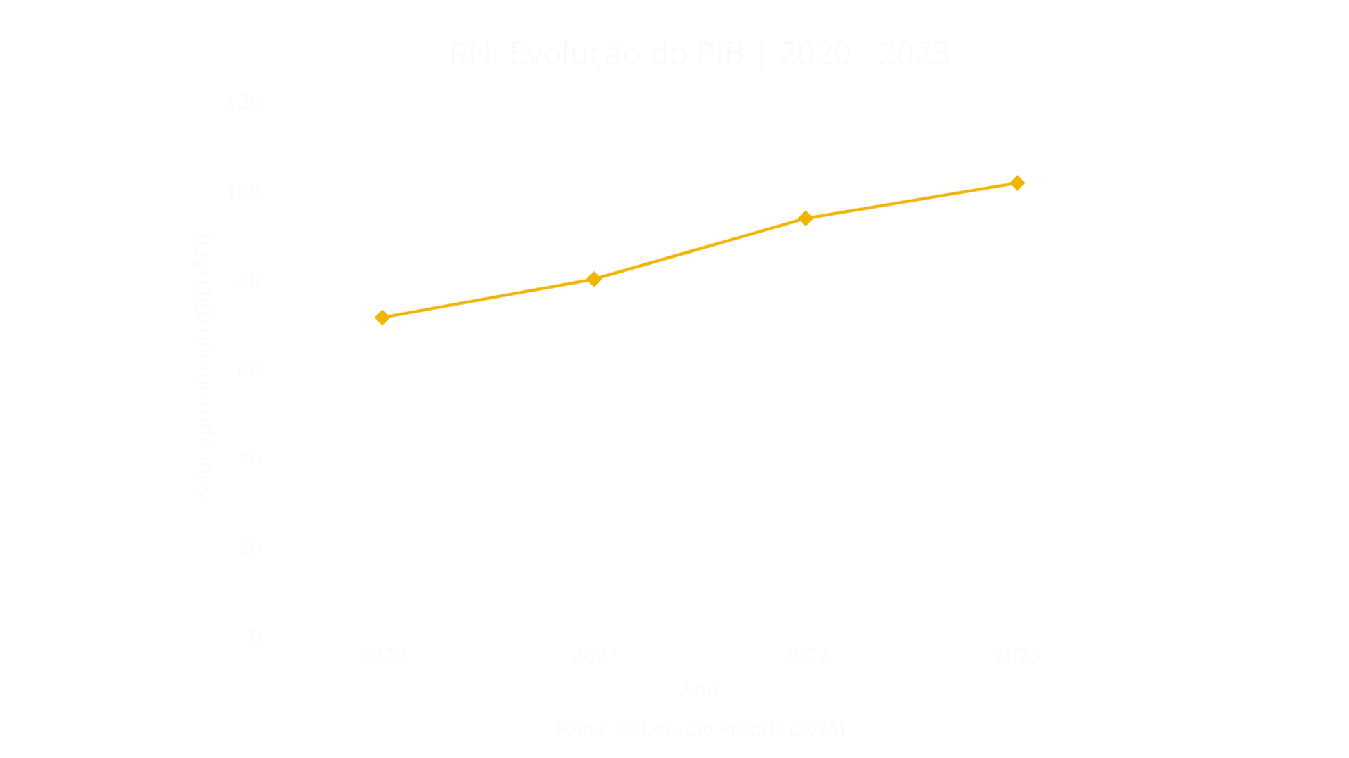 De acordo com o SCR — Sistema de Contas Regionais do IBGE —, o PIB do Rio Grande do Norte apresentou crescimento contínuo entre 2020 e 2023. Confira: